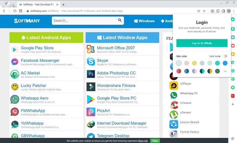 Whale Browser è un browser web ricco di funzionalità, leggero e veloce, che consente un caricamento rapido delle pagine web. Il software gratuito basato su Chromium offre un pannello istantaneo per visualizzare le pagine web senza aprire una nuova scheda. Semplifica la navigazione avanzata utilizzando diversi strumenti utili, tra cui componenti aggiuntivi e modalità scura.